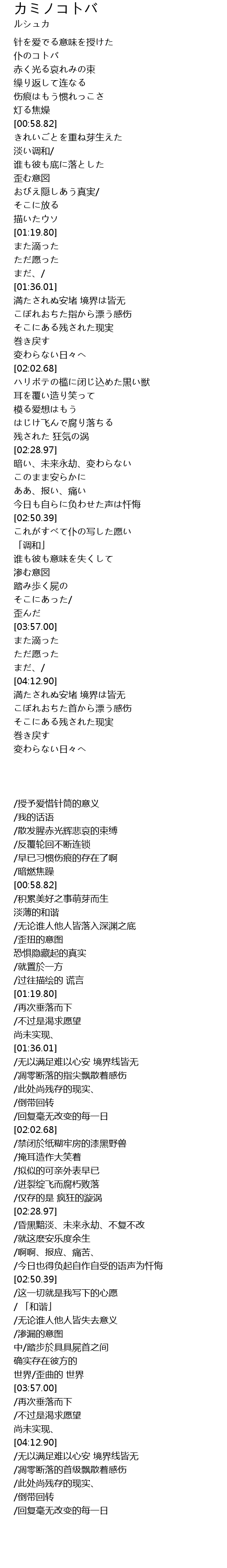 | [04:13.36] | 満たされぬ安堵 境界は皆无 |