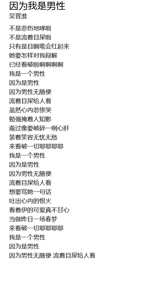 | 因为男性无随便 流着目屎给人看 |