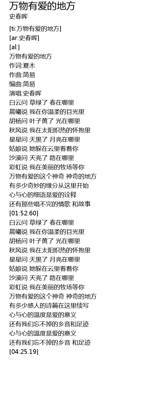 | [03:26.45] | 万物有爱的这个神奇 神奇的地方 |