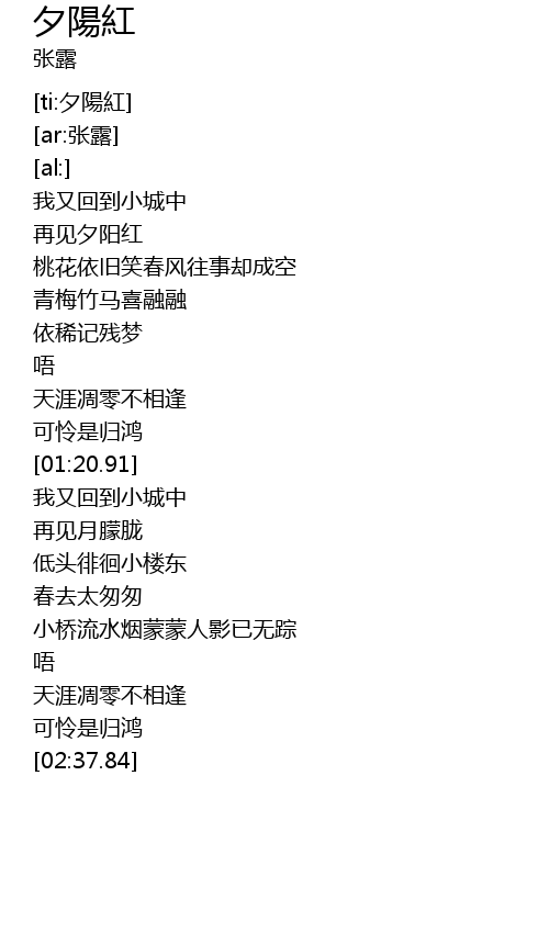 | [00:39.59] | táo huā yī jiù xiào chūn fēng wǎng shì què chéng kōng |