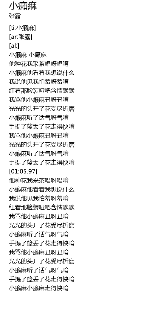 | [00:05.07] | xiao lai ma xiao lai ma |