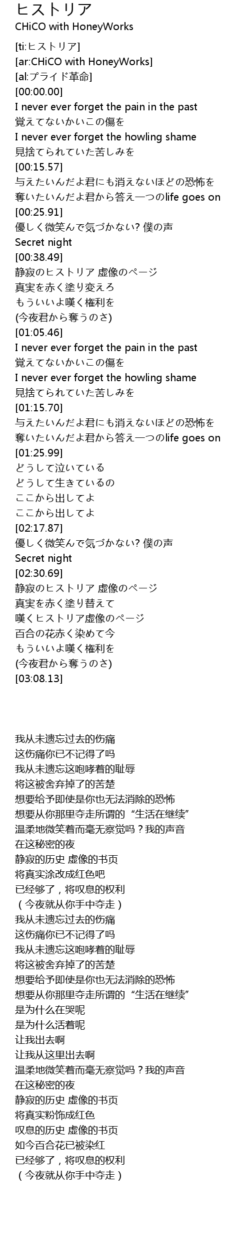 | [02:41.94] | 嘆くヒストリア虚像のページ |