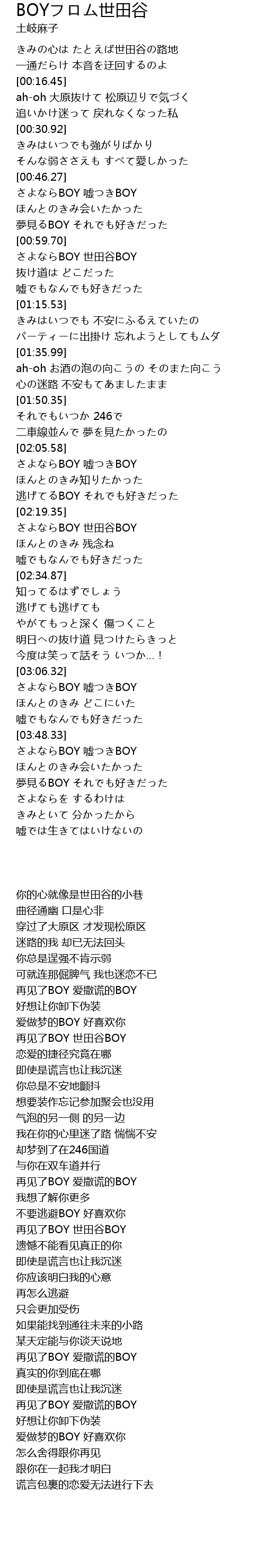 | [02:20.38] | さよならBOY 世田谷BOY |