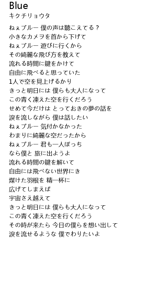 | [01:58.89] | ねぇブルー 気付かなかった |