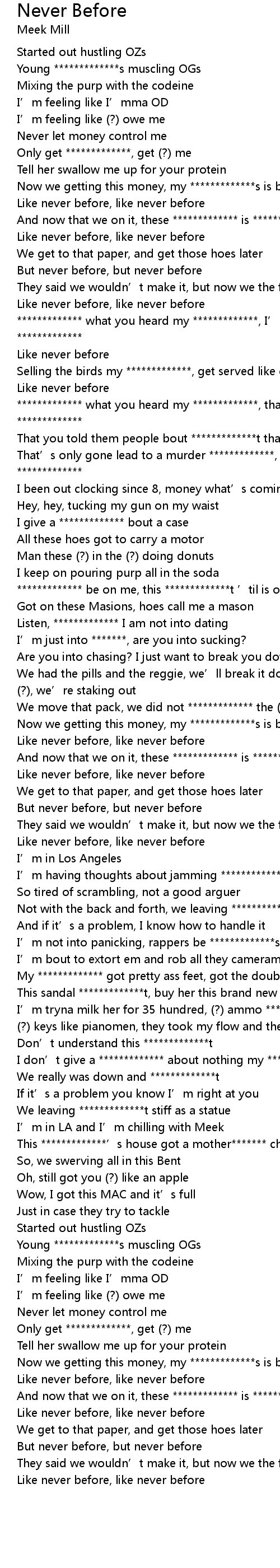 | [01:57.95] | I’m tryna milk her for 35 hundred, (?) ammo *************t |