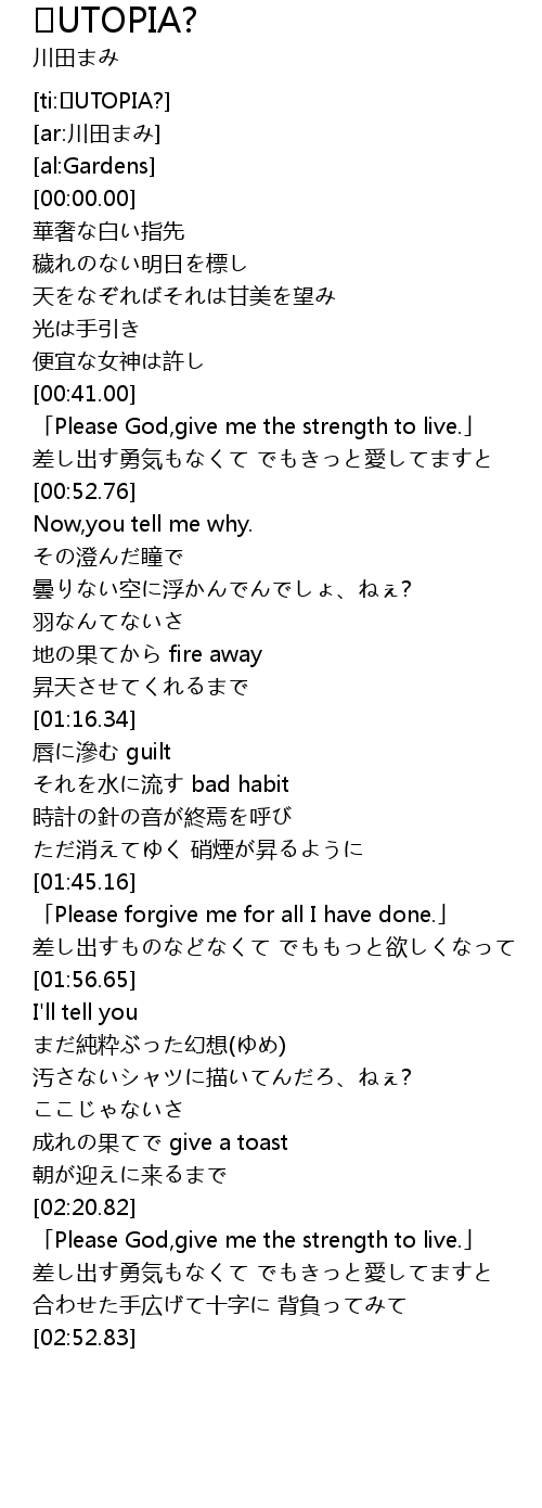 | [00:42.53] | 「Please God,give me the strength to live.」 |
