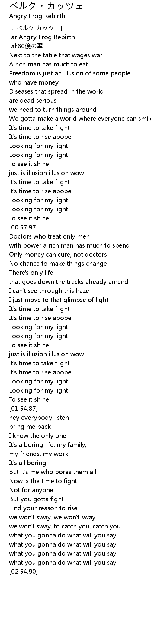 | [01:44.44] | It's time to rise abobe |
