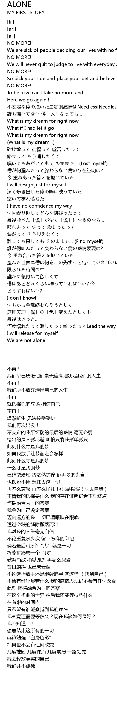 | [01:05.65] | 嘆いてもあがいても このままで… (Lost myself) |