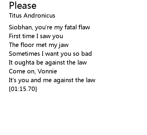 | [00:00.98] | Siobhan, you're my fatal flaw |