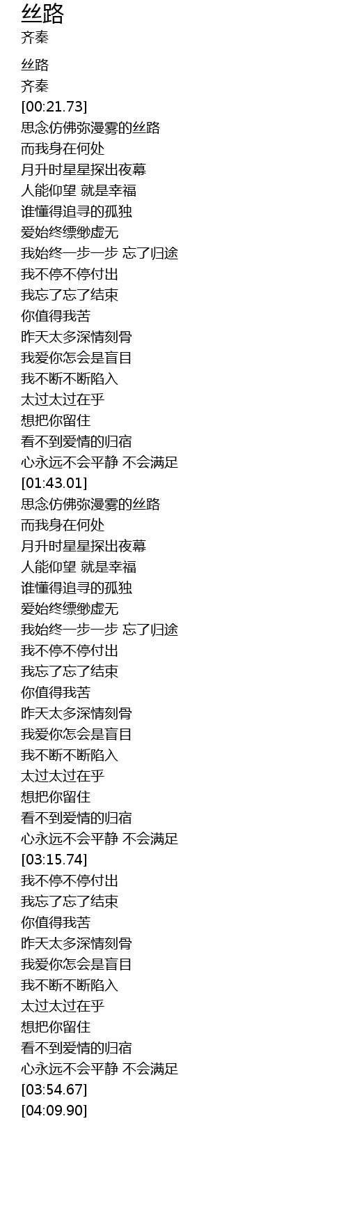 | [00:10.30] | 丝路 |