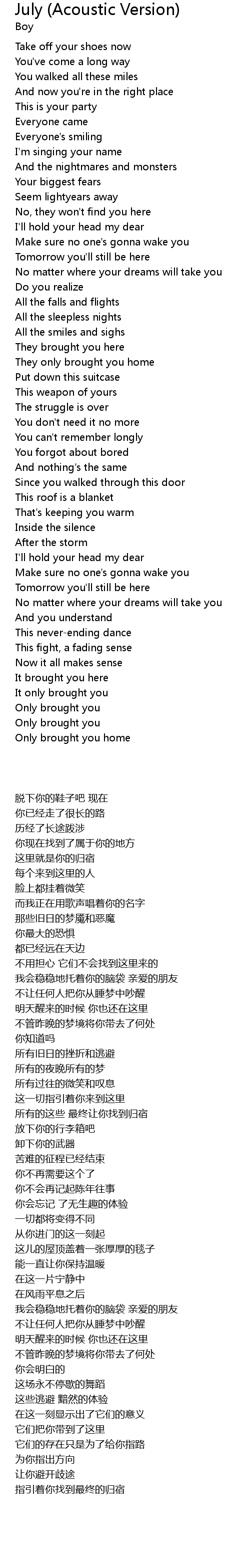 July (Acoustic Version) Lyrics