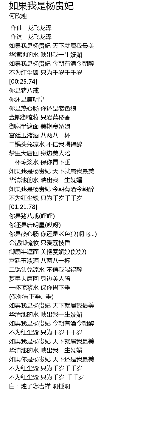 | [02:29.52] | 如果我是杨贵妃 天下就属我最美 |