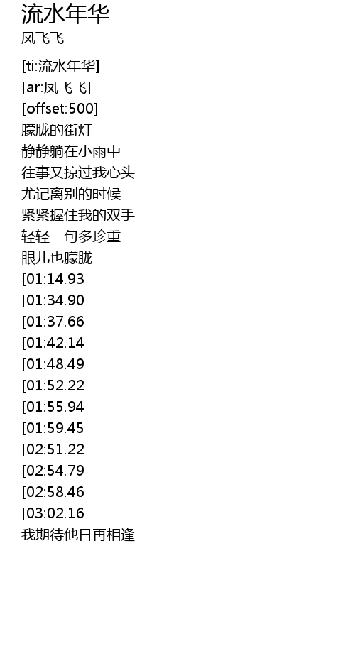 | [00:49.17][01:34.90][03:07.95] | 年华似水流 |