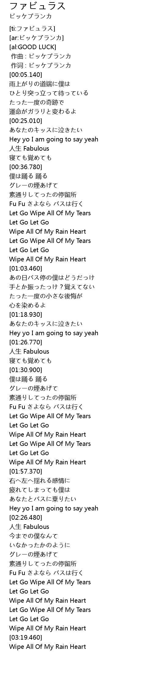 | [03:04.750] | Let Go Wipe All Of My Tears |