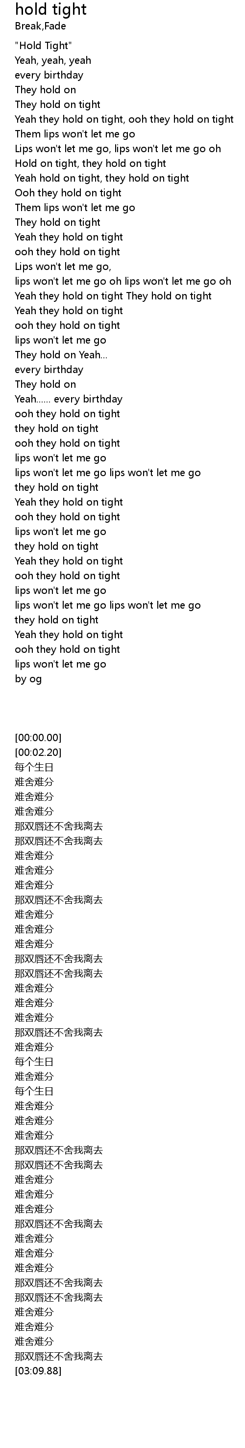 | [00:34.70] | Yeah they hold on tight, ooh they hold on tight |