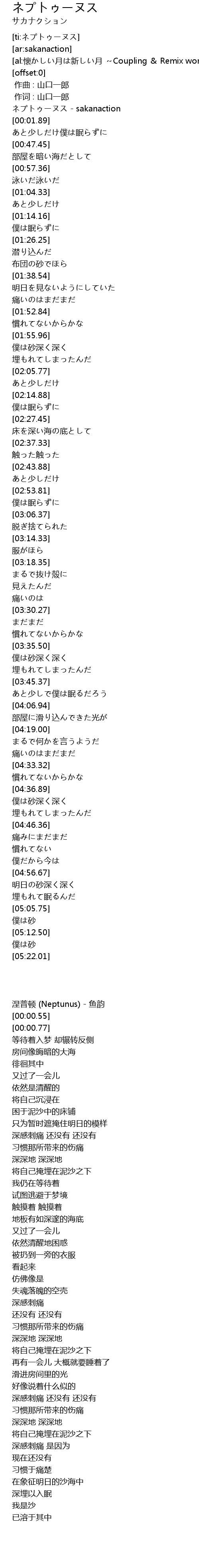 | [00:00.23] | ネプトゥーヌス - sakanaction |