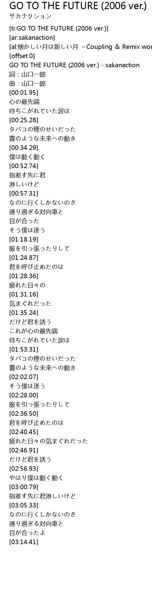 | [00:00.36] | GO TO THE FUTURE (2006 ver.) - sakanaction |