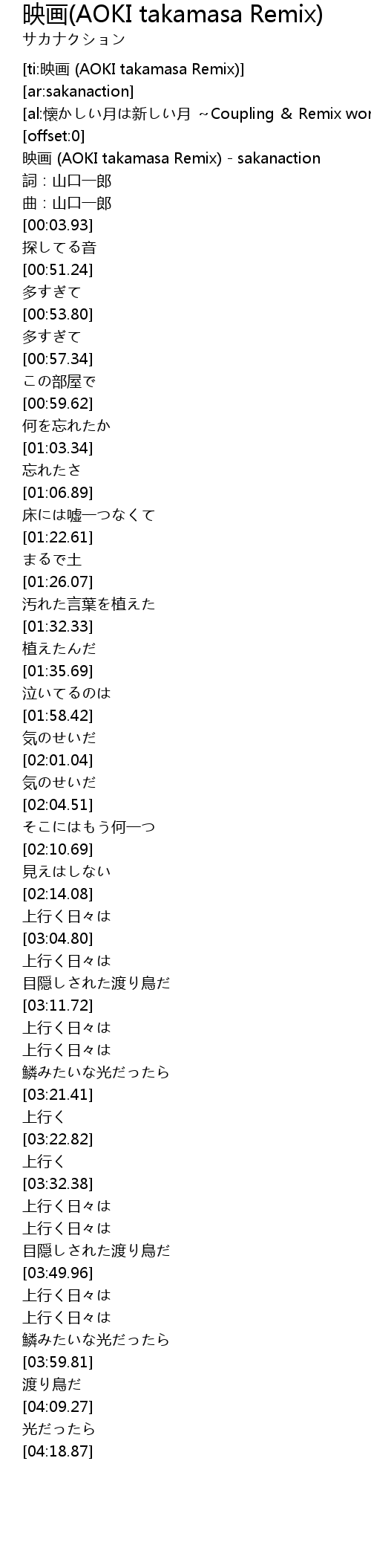 | [ti:映画 (AOKI takamasa Remix)] | |