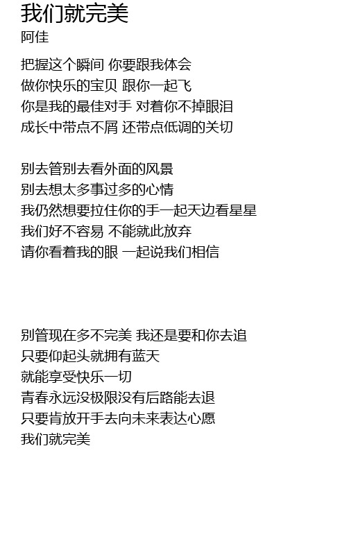 | 别管现在多不完美 我还是要和你去追 | |