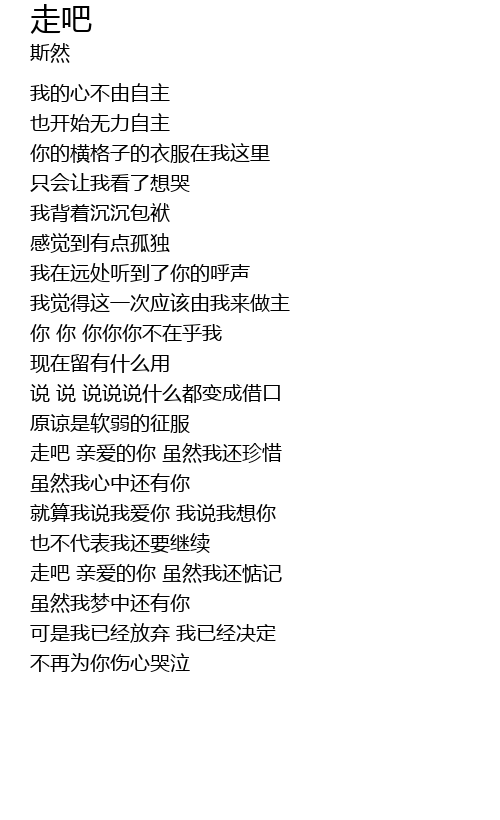 | 走吧 亲爱的你 虽然我还珍惜 | |