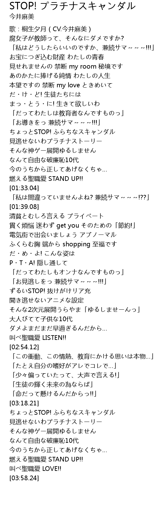 | [03:22.51] | ちょっとSTOP! ふらちなスキャンダル |