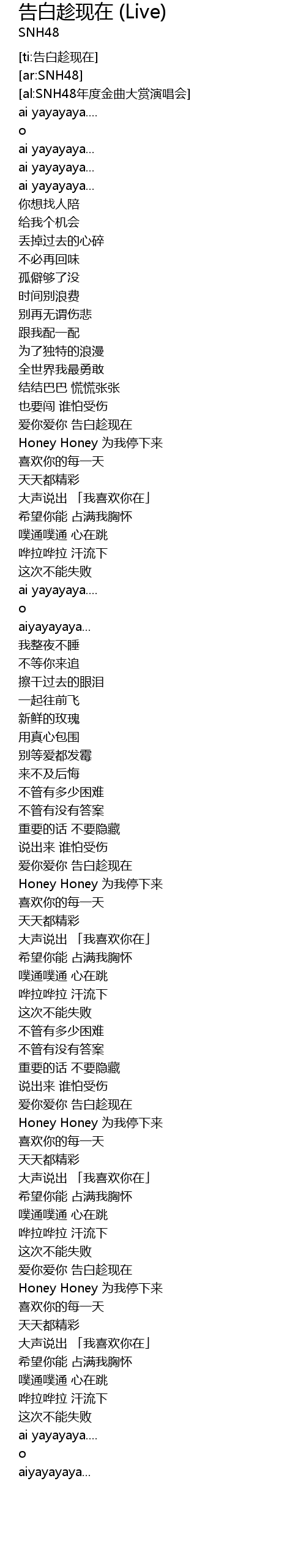 | [02:49.36] | ài nǐ ài nǐ gào bái chèn xiàn zài |