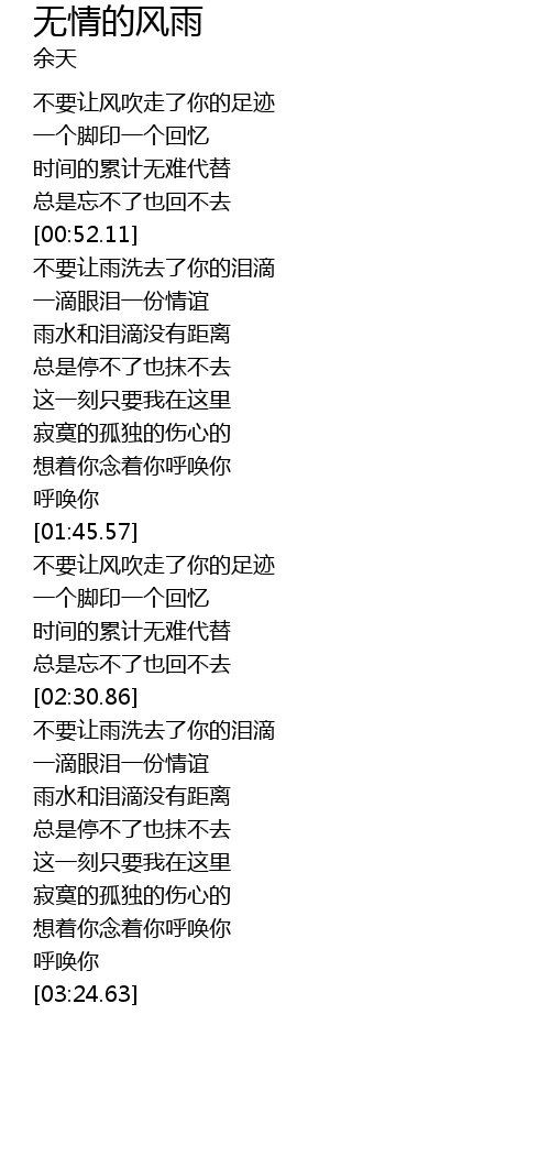 | [02:41.39] | 不要让雨洗去了你的泪滴 |