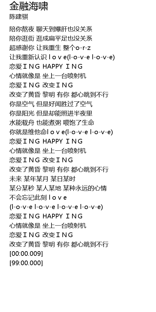 | [00:09.72] | 让我重新认识 l o v e(l-o-v-e l-o-v-e) |