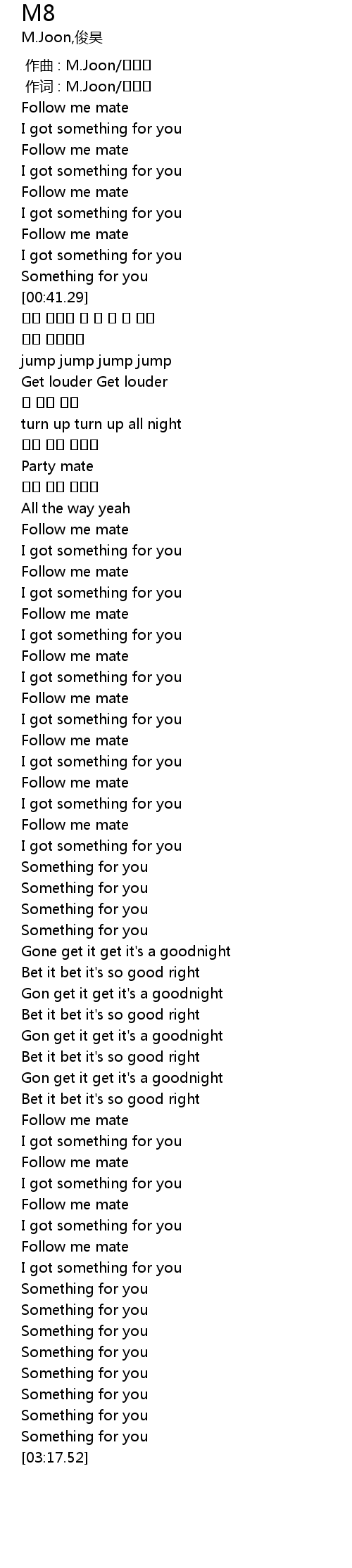 | [00:01.00] | zuò cí : M. Joon |