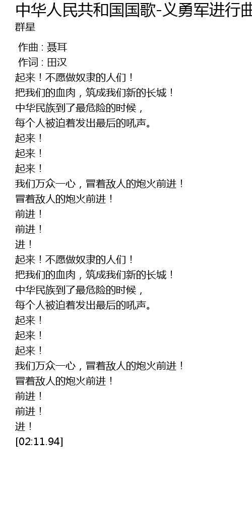 | [00:00.00] | 作曲 : 聂耳 |