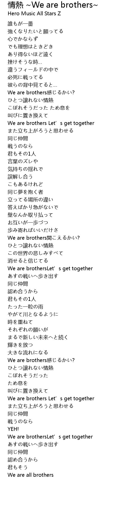 | [00:53.44] | We are brothers感じるかい? |