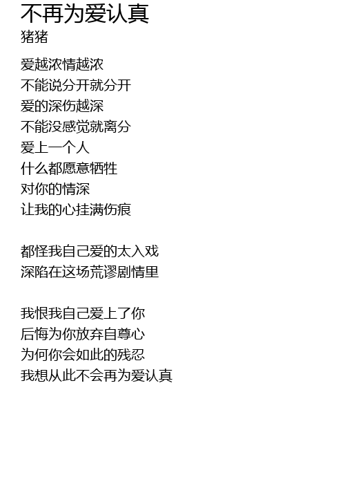 | wǒ xiǎng cóng cǐ bú huì zài wèi ài rèn zhēn |