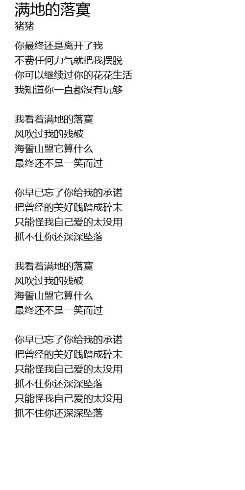 | wǒ kàn zhe mǎn dì de luò mò | |