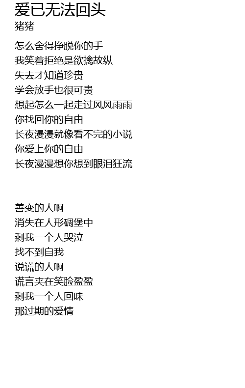 爱已无法回头 ai yi wu fa hui tou Lyrics