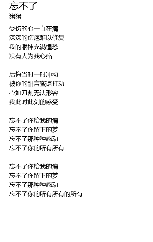 | wàng bù liǎo nǐ gěi wǒ de tòng | |