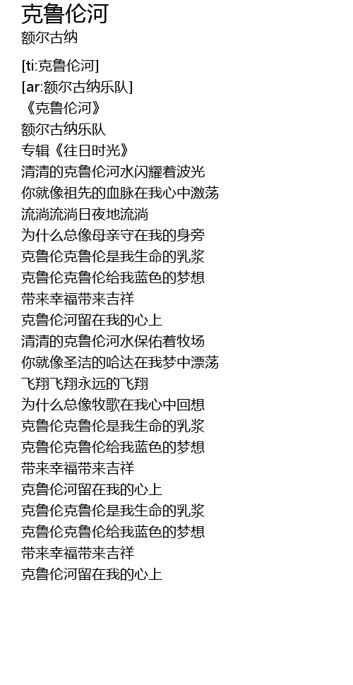 | [00:01.640] | 《克鲁伦河》 |