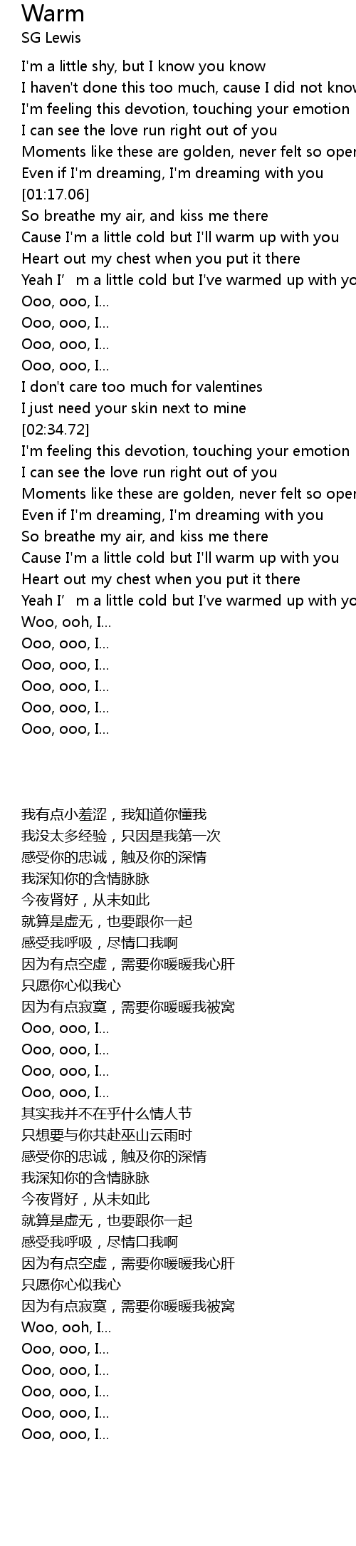 | [01:32.15] | Yeah I’m a little cold but I've warmed up with you |