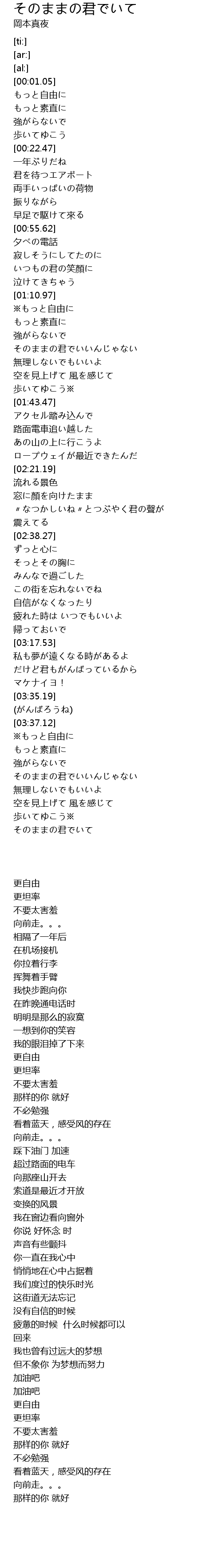 | [01:21.89] | そのままの君でいいんじゃない |