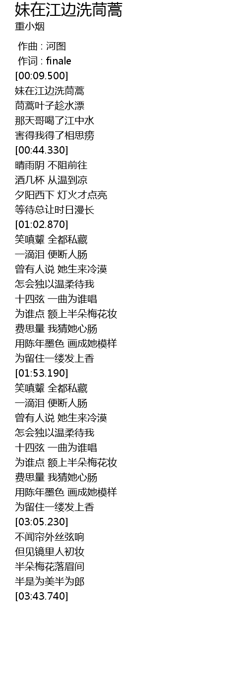 | [00:12.020] | mèi zài jiāng biān xǐ tóng hāo |