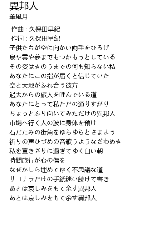 | [01:49.97] | ちょっとふり向いてみただけの異邦人 |