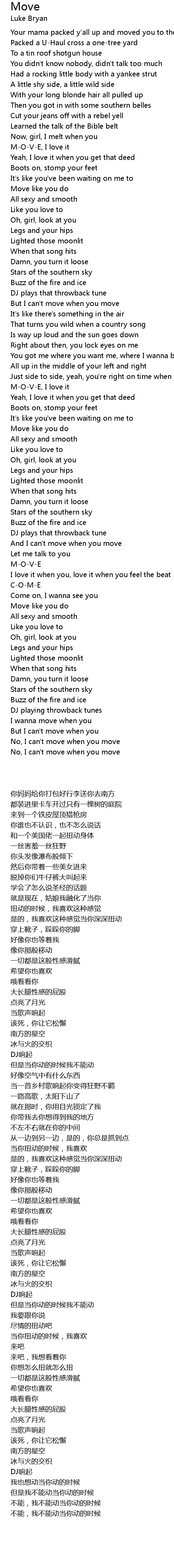 But I can't move when you move |