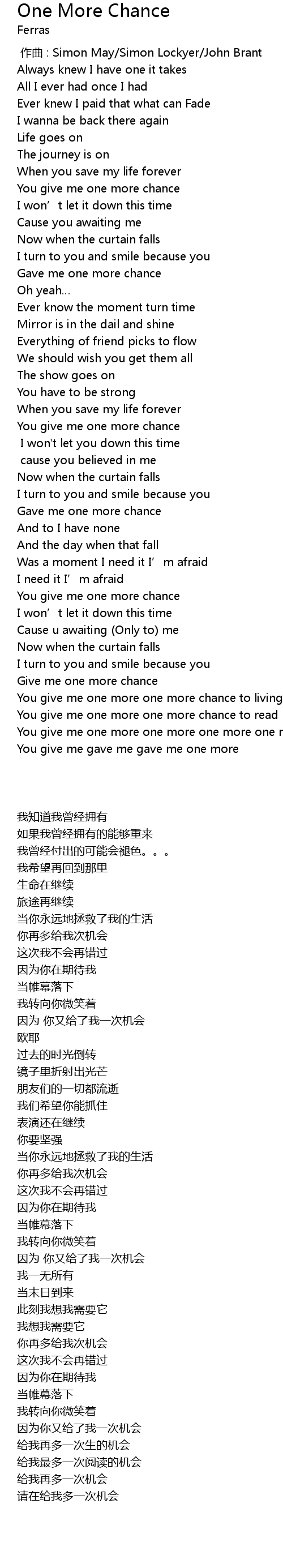 | [00:51.299] | You give me one more chance |