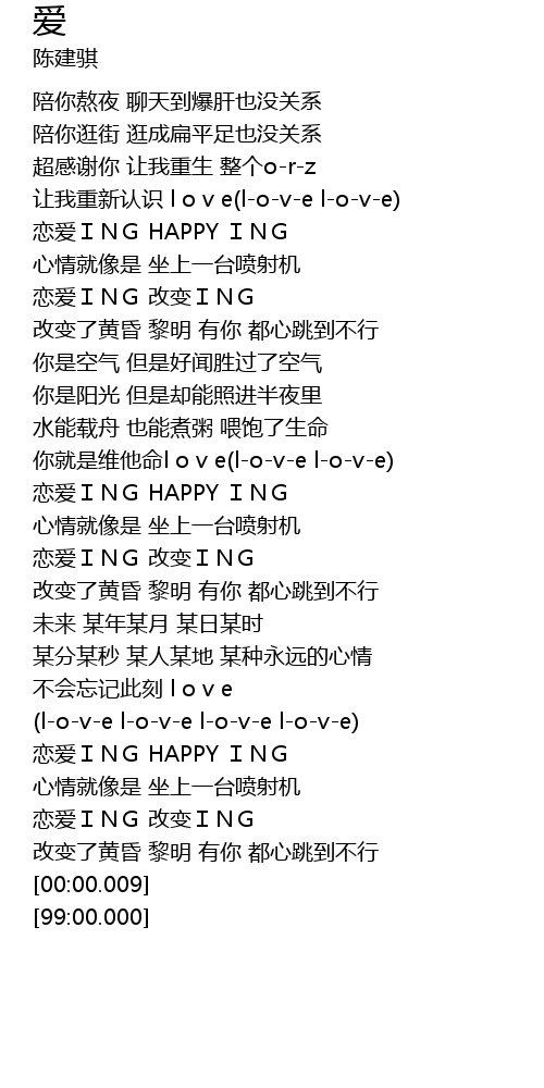 | [00:09.72] | 让我重新认识 l o v e(l-o-v-e l-o-v-e) |