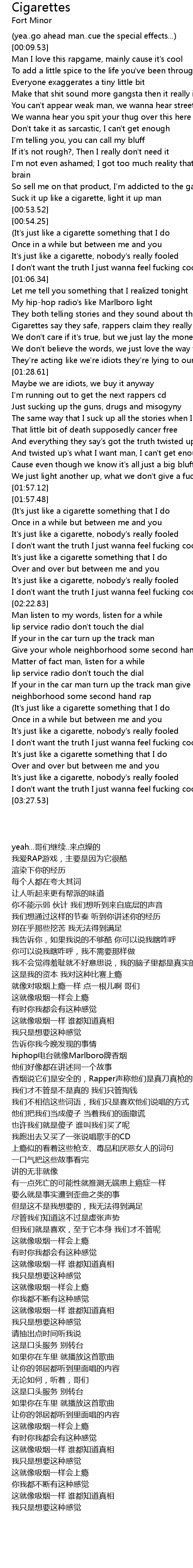 [01:54.13] We just light another up, what we don't give a fuck!!!