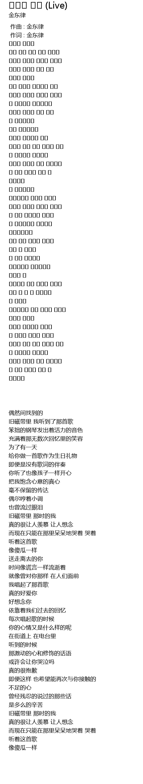 | [00:23.54] | 낡은 테잎 속에 노랠 들었어 |