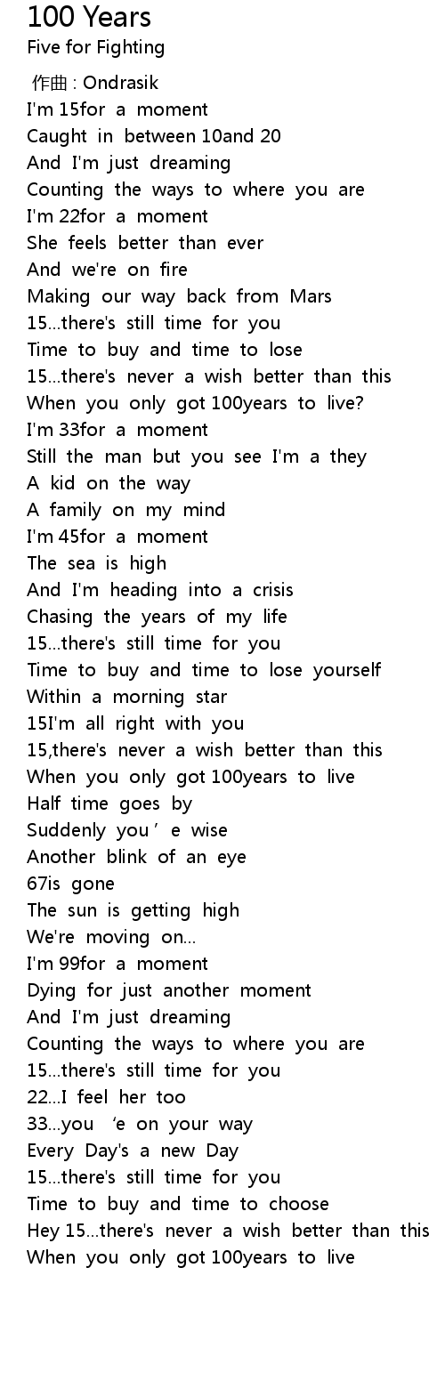 | [03:43.257] | When you only got 100years to live |