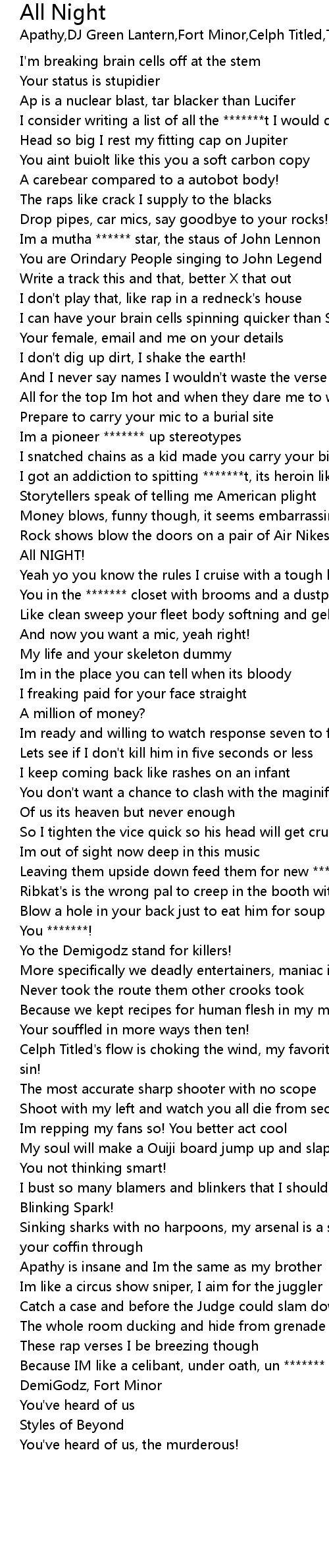 All Night Lyrics