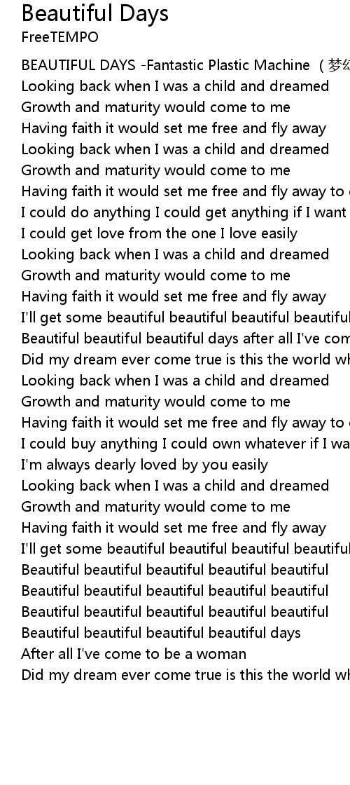 | [00:00.369] | BEAUTIFUL DAYS Fantastic Plastic Machine meng huan su liao ji qi |
