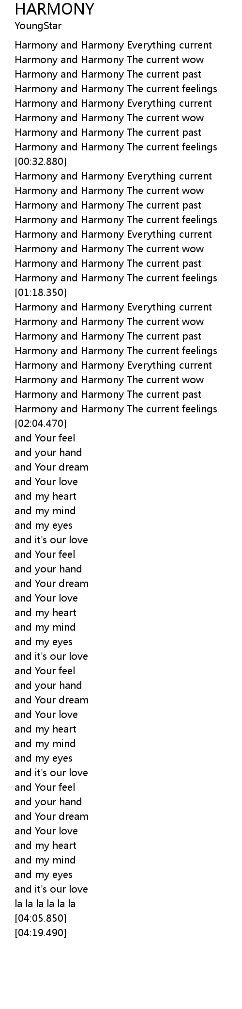 | [01:59.280] | Harmony and Harmony The current feelings |