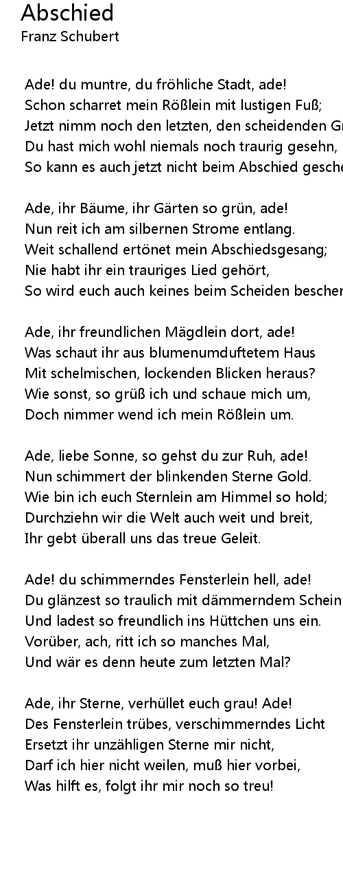 | Ade! du muntre, du fr hliche Stadt, ade! | |